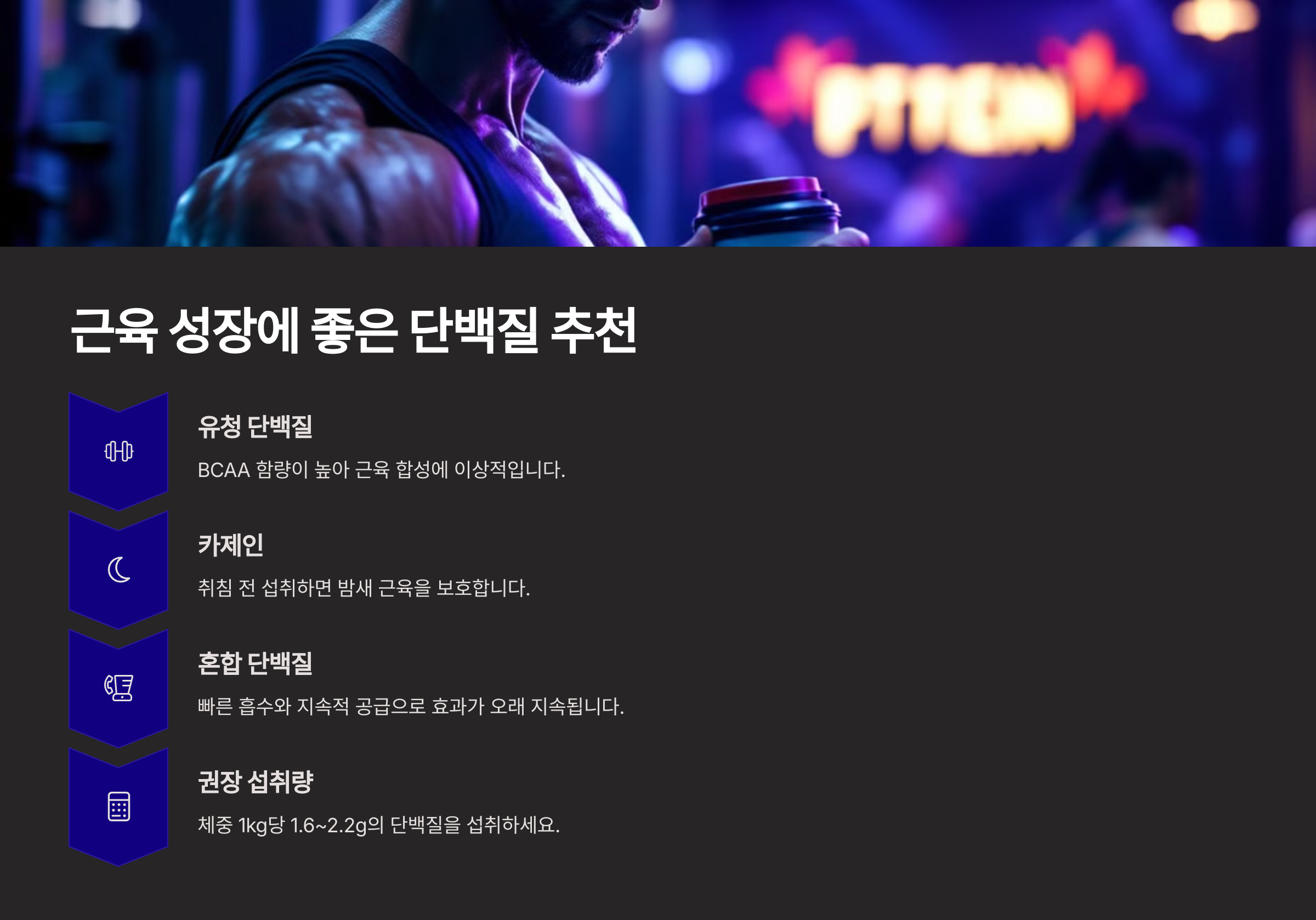 👇 계속해서 근육 성장에 좋은 단백질을 알아볼까요? 👇
