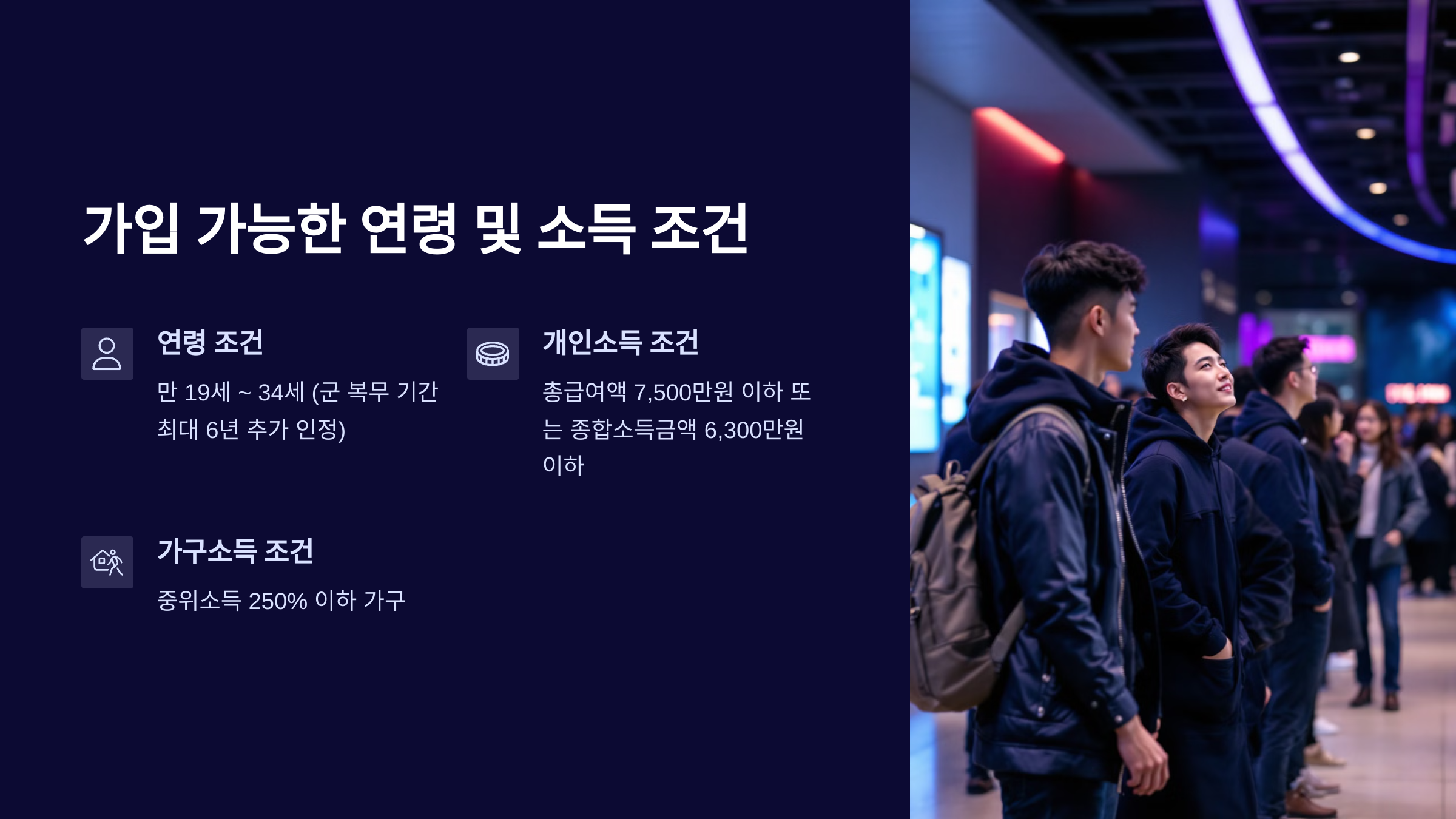 청년도약계좌에 가입하려면 몇 가지 조건을 충족해야 해요. 가장 중요한 것은 연령과 소득이에요.