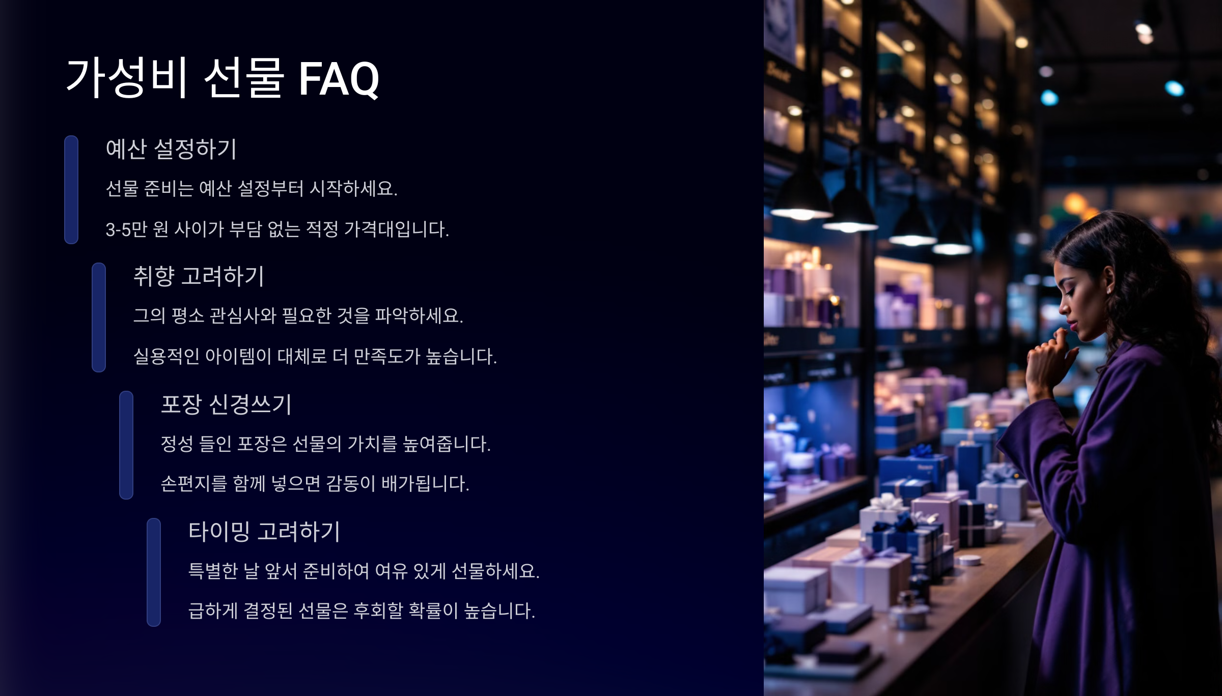 이어서 가성비 선물 관련 자주 묻는 질문 (FAQ)을 살펴볼게요! ⏩