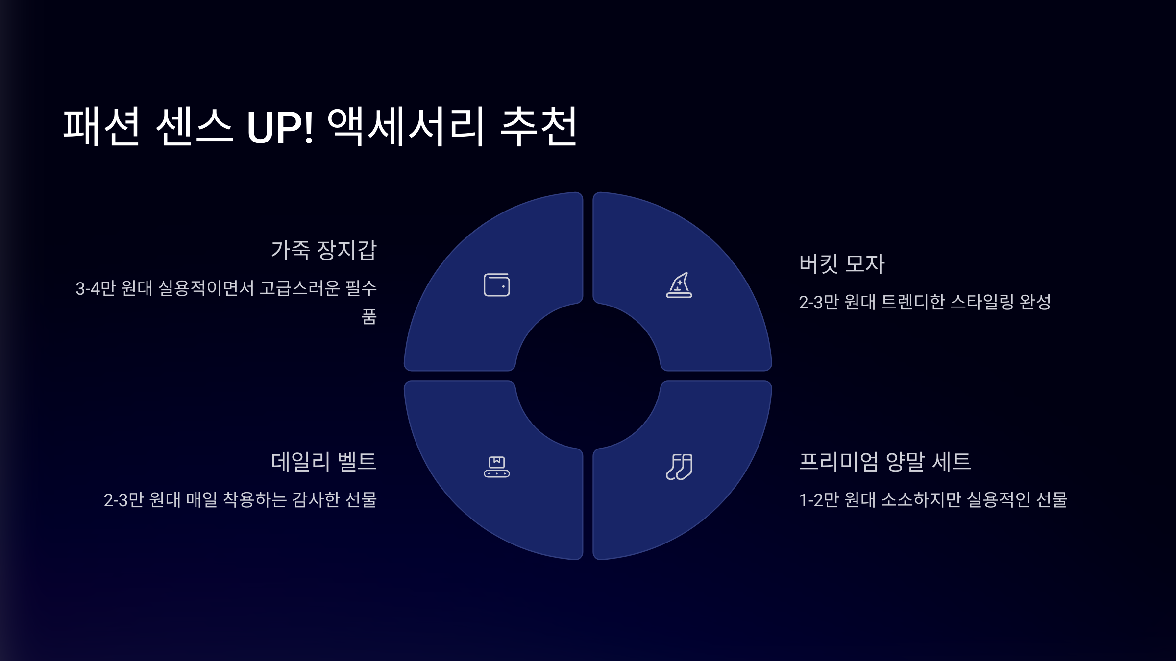 | 가죽 팔찌 | 2만 원~5만 원 | 데일리 패션 포인트 |