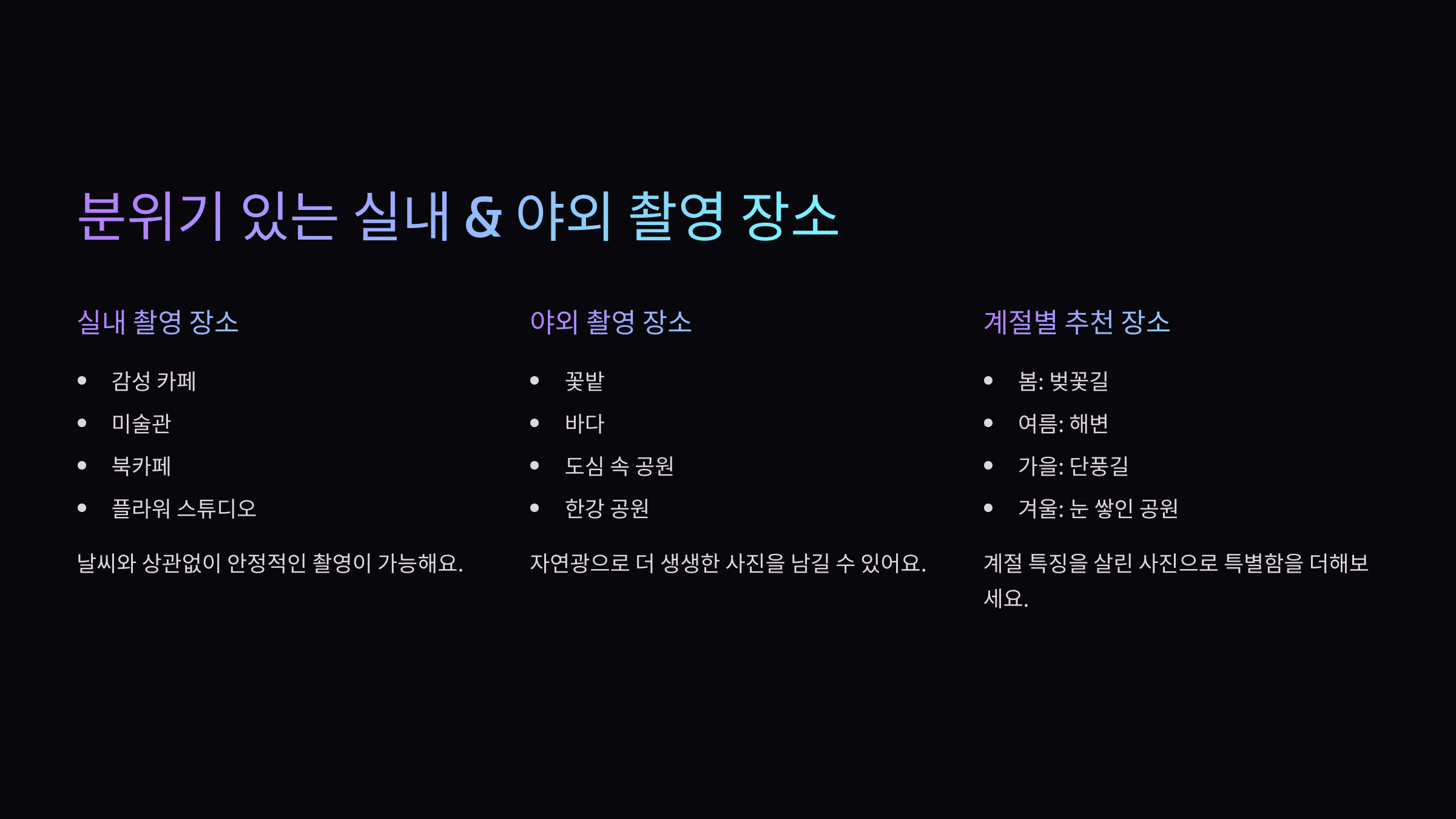 🏠 분위기 있는 실내 & 야외 촬영 장소