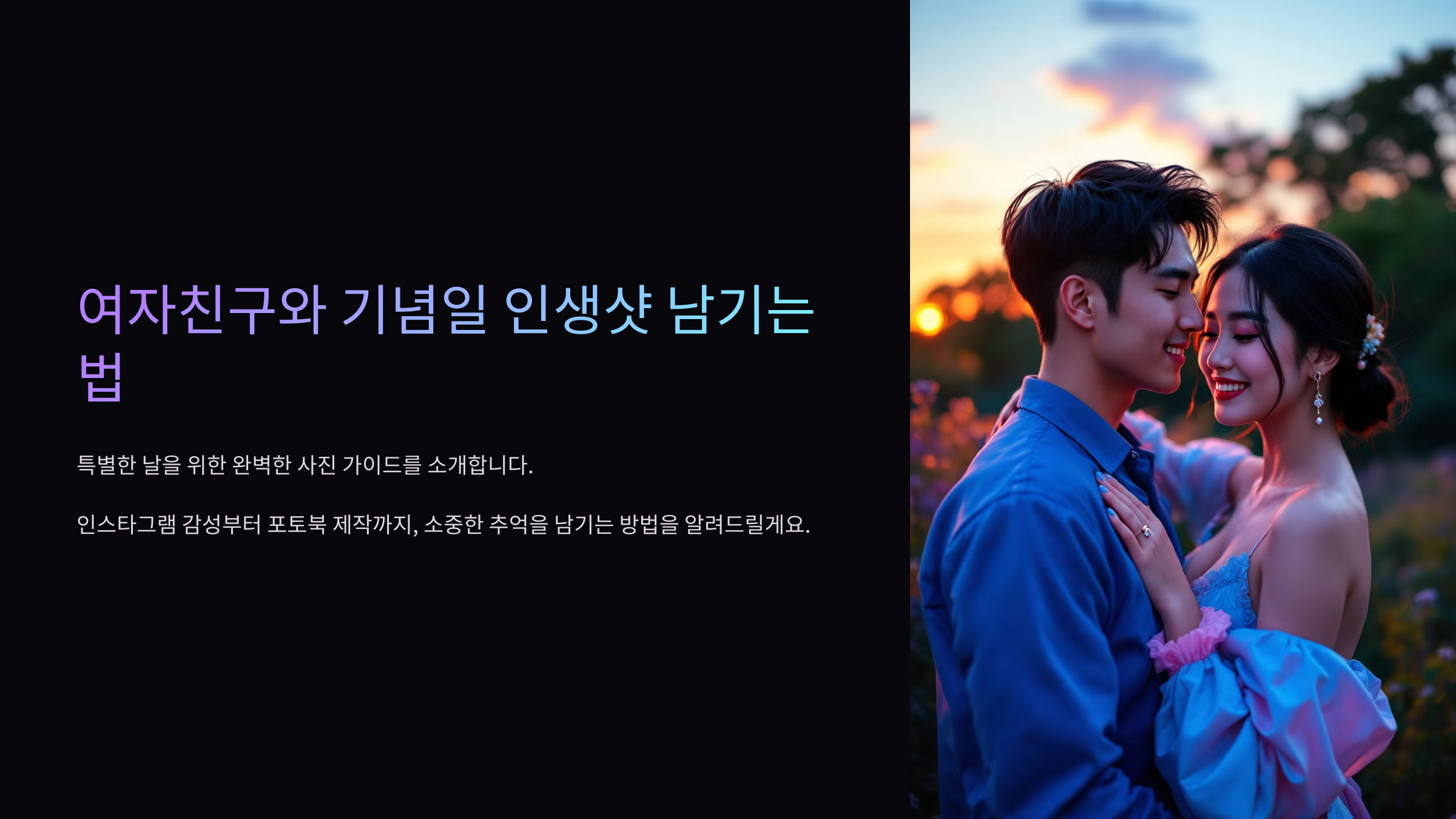 오늘은 여자친구와 함께 인생샷을 남길 수 있는 최고의 장소부터, 감성적인 연출 팁, 사진 촬영 꿀팁까지 모두 알려줄게요! 기념일마다 특별한 추억을 만들어보세요. 📷✨