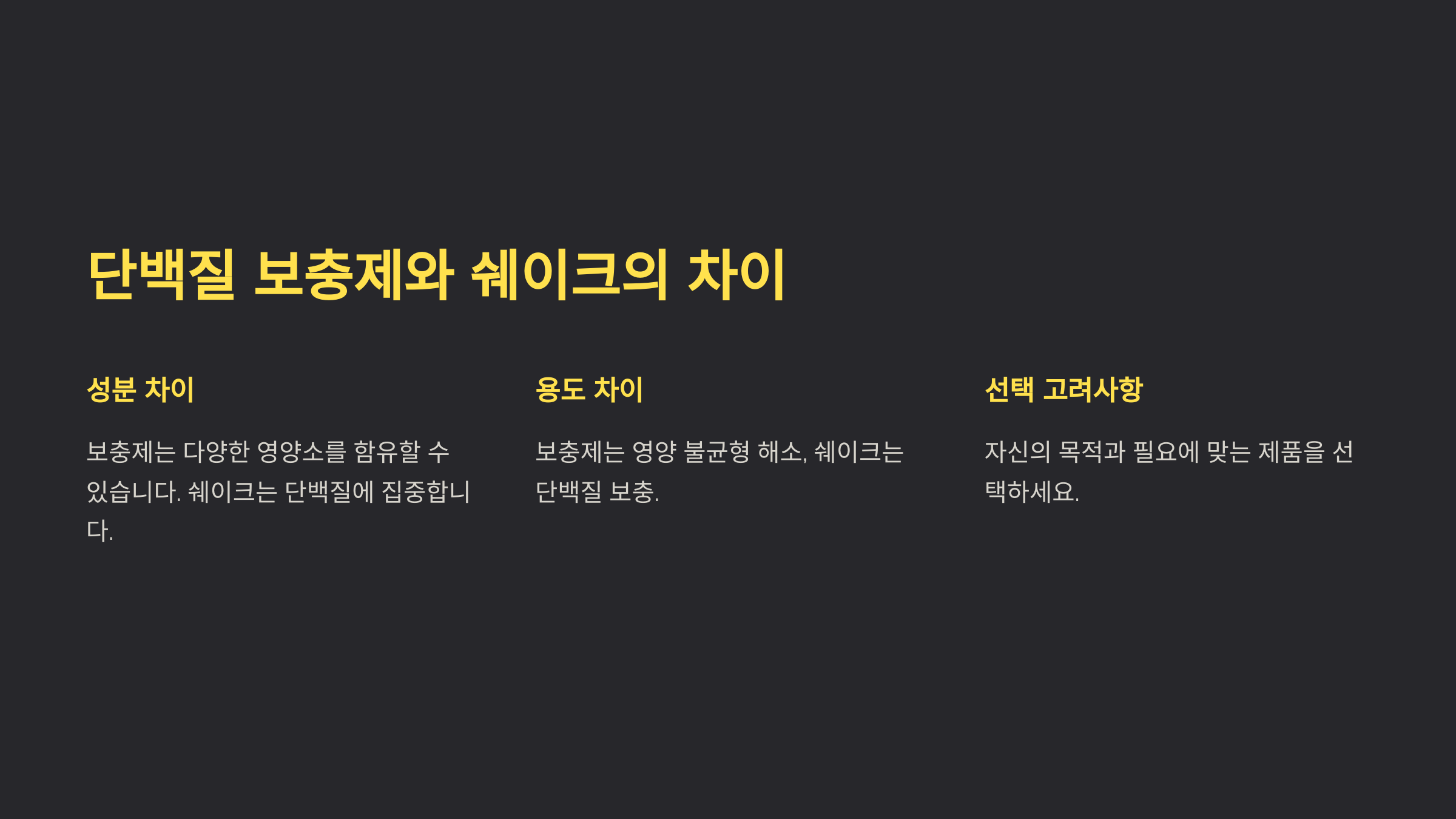 | 구분 | 단백질 쉐이크 | 단백질 보충제 |