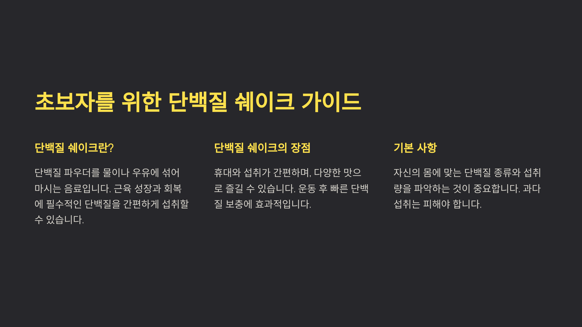 단백질 쉐이크는 운동 후 근육 회복을 돕고, 근육 성장에 필수적인 영양을 공급하는 역할을 해요. 하지만 처음 접하는 사람