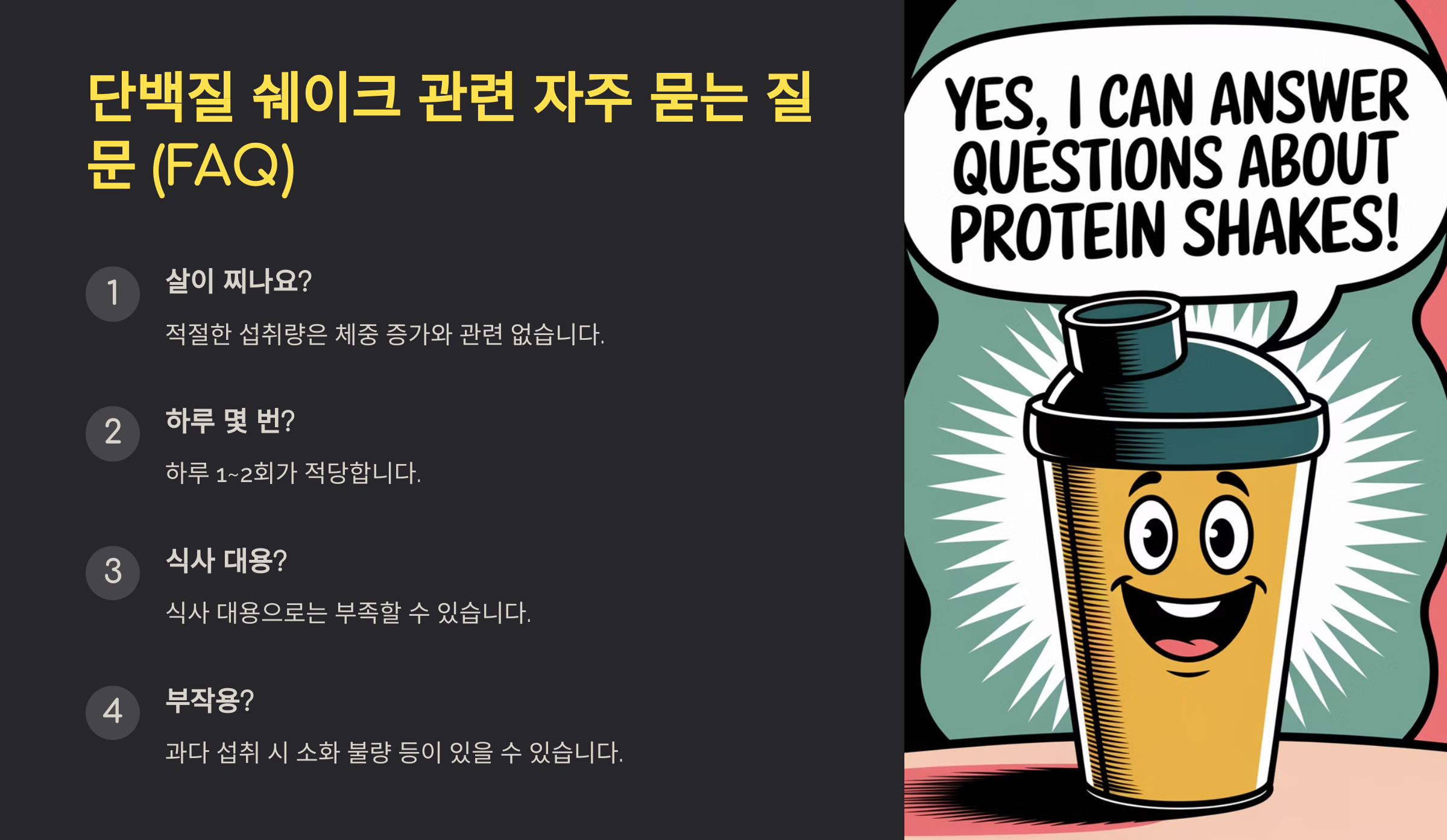 이제 단백질 쉐이크에 대해 자주 묻는 질문을 살펴볼까요? 📌