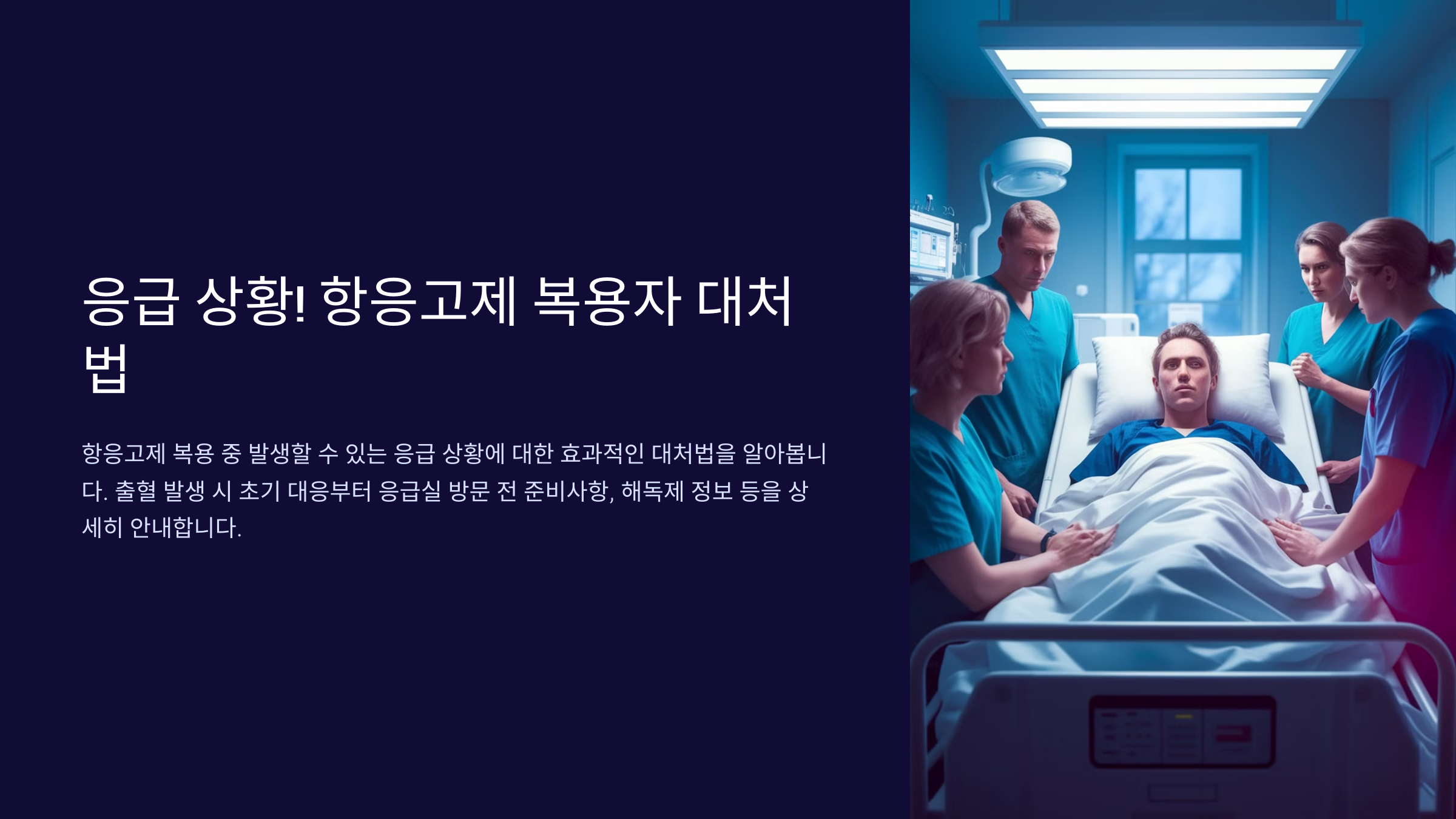 항응고제(와파린, NOAC 등)를 복용 중이라면 출혈이 발생했을 때 어떻게 대처해야 할지 미리 알고 있어야 해요. 응급 상황에서 적절한 대응이 생명을 구할 수 있답니다. 특히 두부 외상이나 위장 출혈처럼 심각한 문제는 신속한 조치가 필요해요.