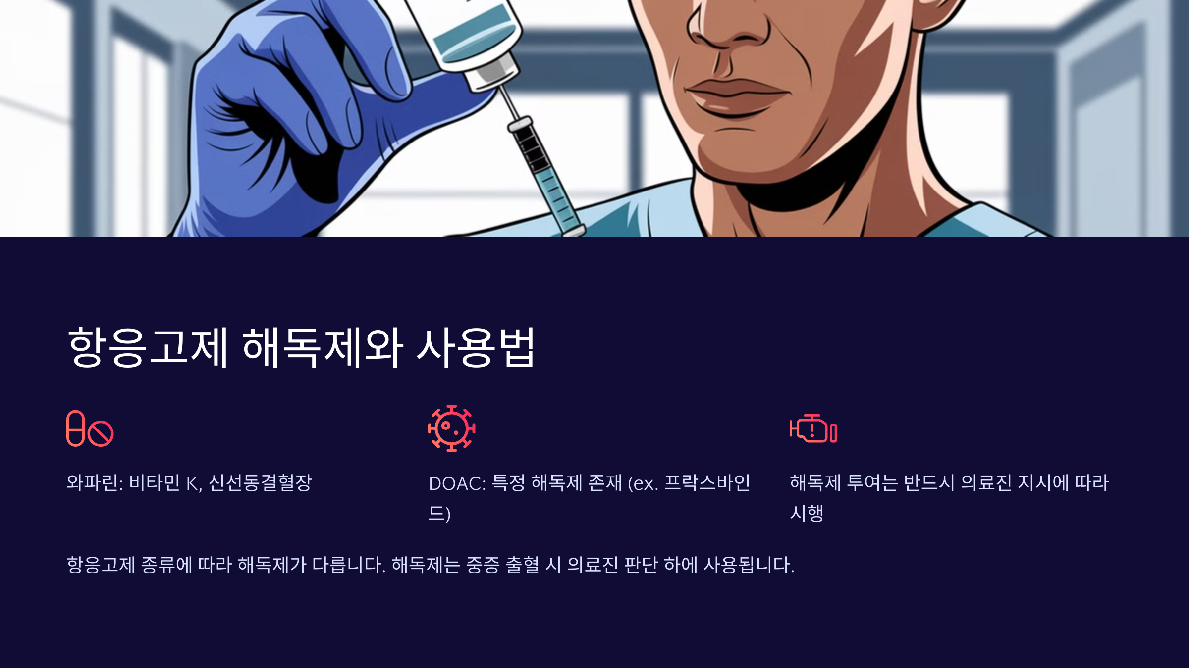 3️⃣ 응급 상황에서 해독제 투여: 해독제는 병원에서만 사용할 수 있어요. 따라서 출혈이 멈추지 않는다면 즉시 응급실로 가야 해요.