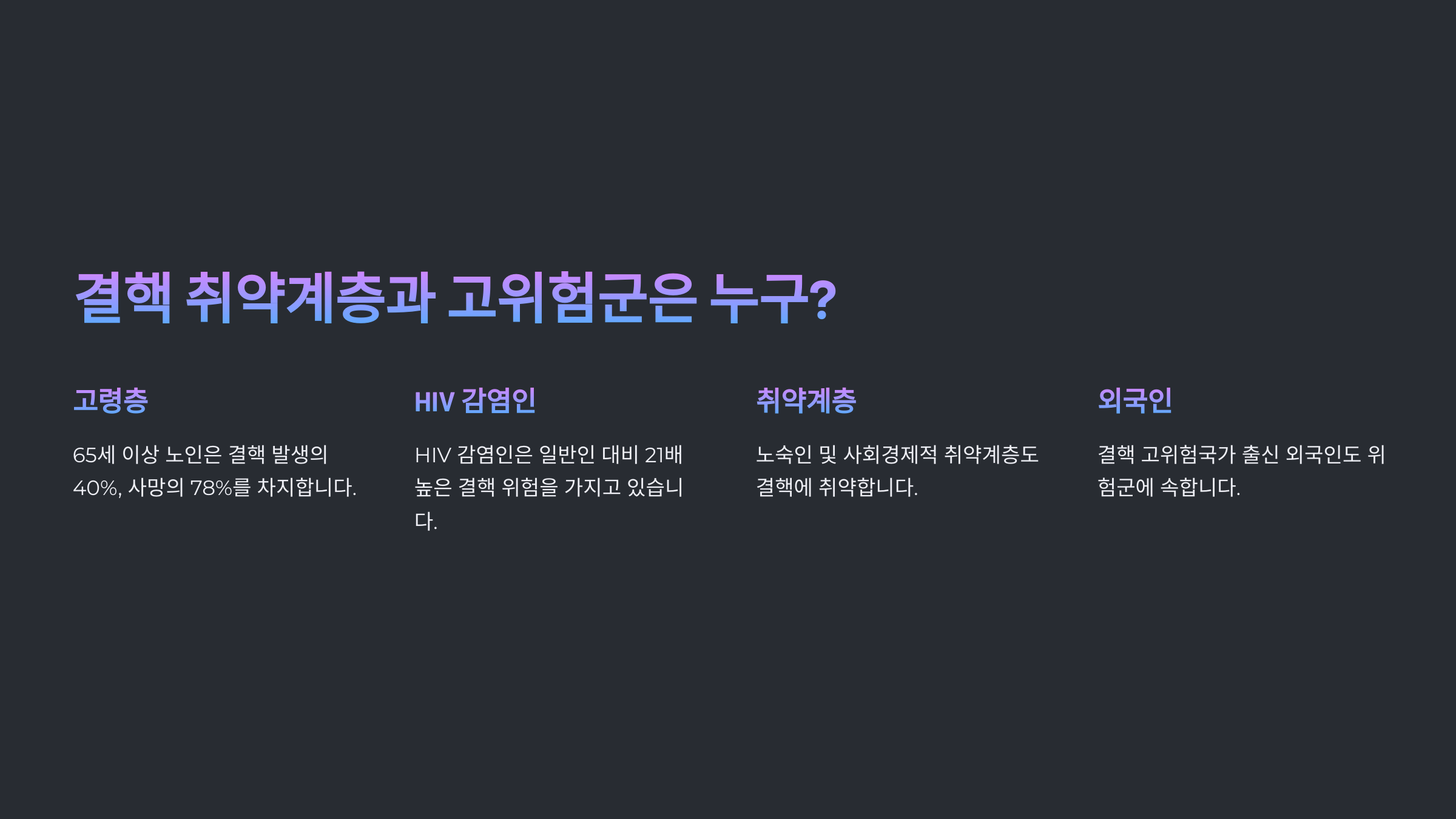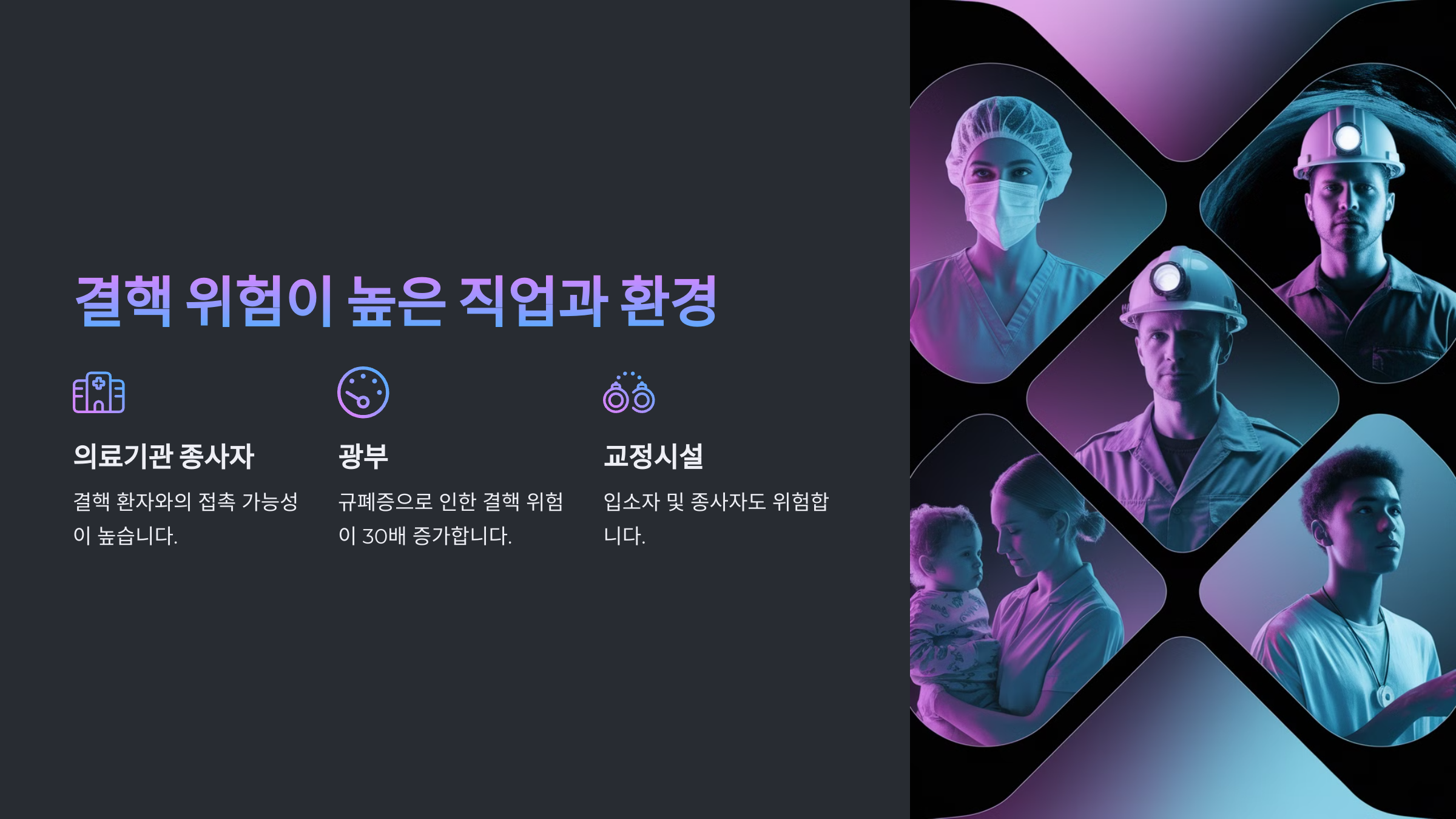 👉 다음 섹션: 결핵 위험이 높은 직업과 환경을 알아볼까요?