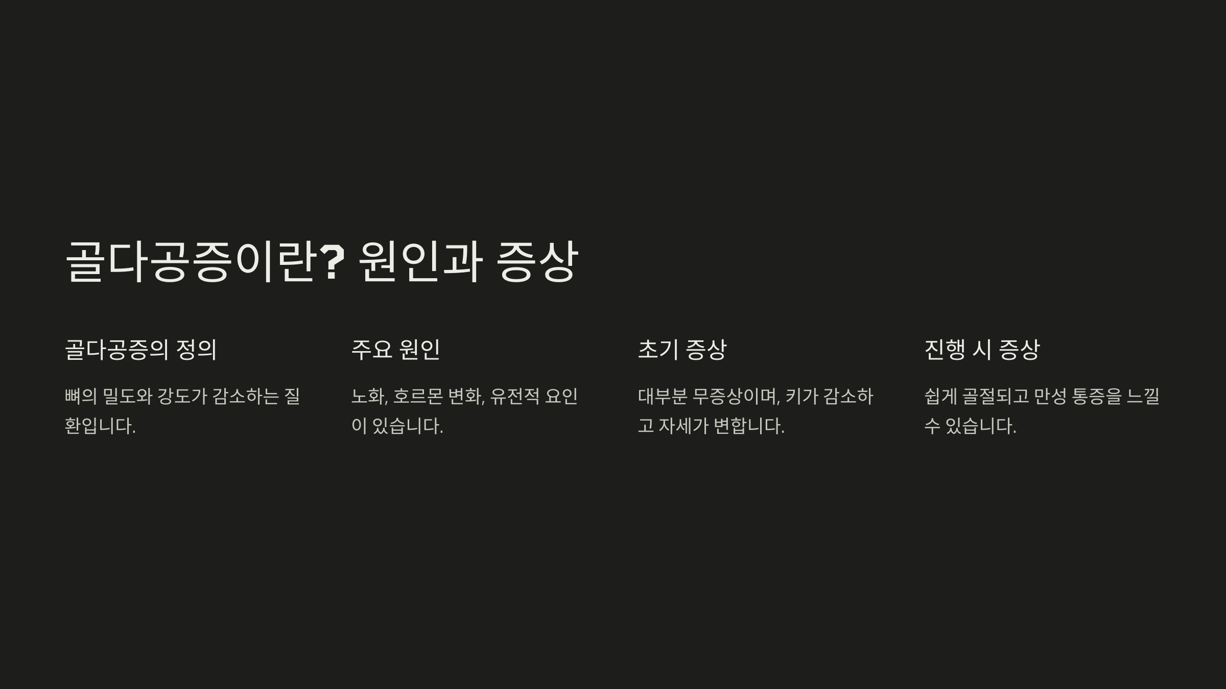 정상 뼈 밀도가 건강한 상태 무증상