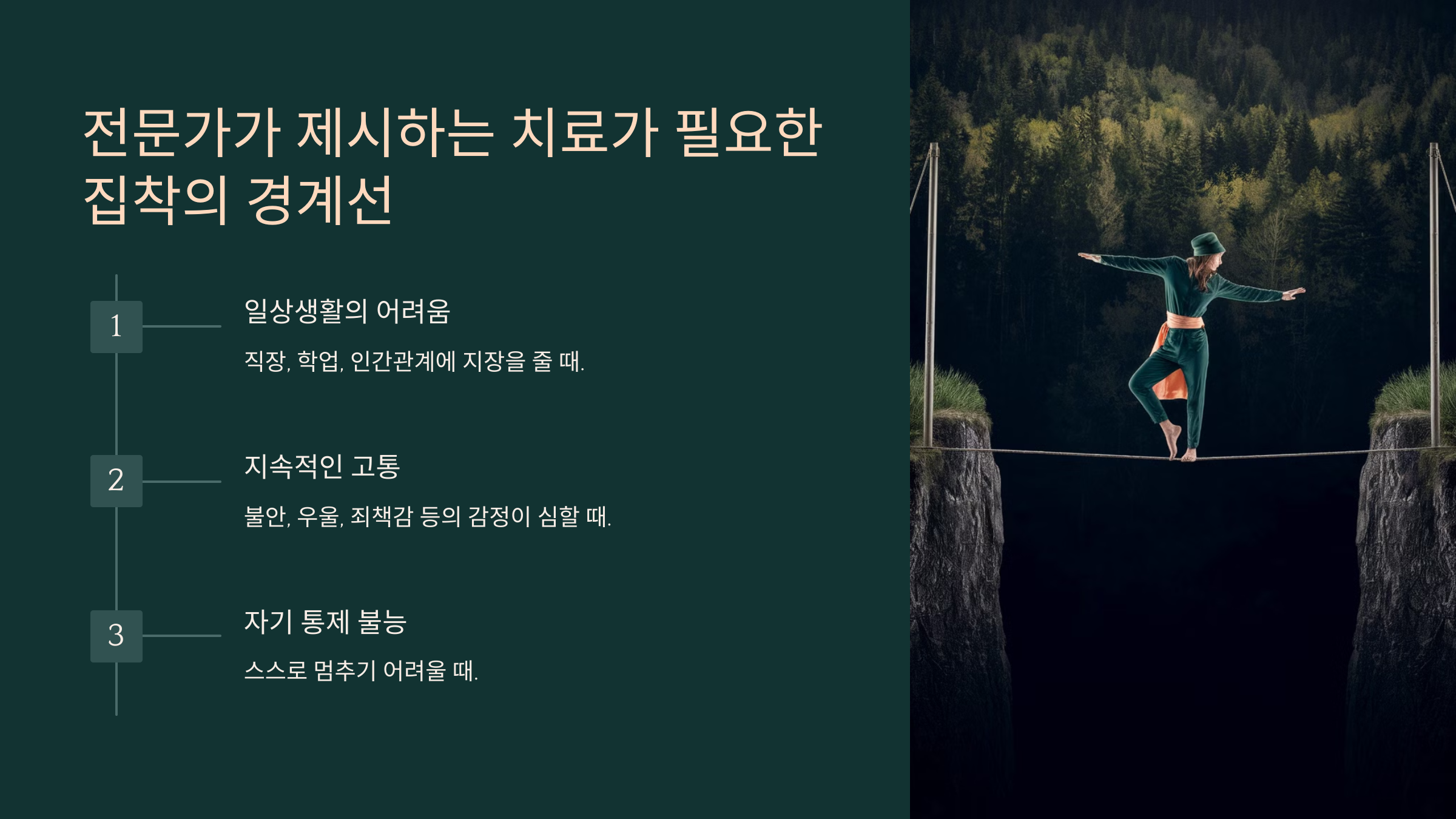 ✅ **자제하려 해도 조절이 안 되는 경우**: 집착을 멈추고 싶어도 스스로 조절이 어렵다면 전문가의 상담이 필요할 수 있어요. 특히 같은 행동을 반복하면서도 멈추지 못하고 죄책감을 느낀다면 경고 신호일 수 있어요.