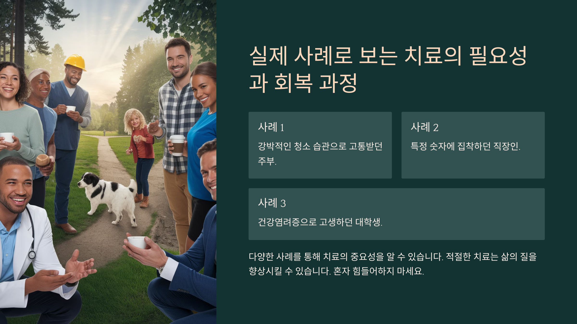 A8. 네, 많은 사람들이 치료를 통해 큰 개선을 경험해요. 중요한 건 집착을 스스로 인식하고, 적절한 도움을 받으려는 자세예요.