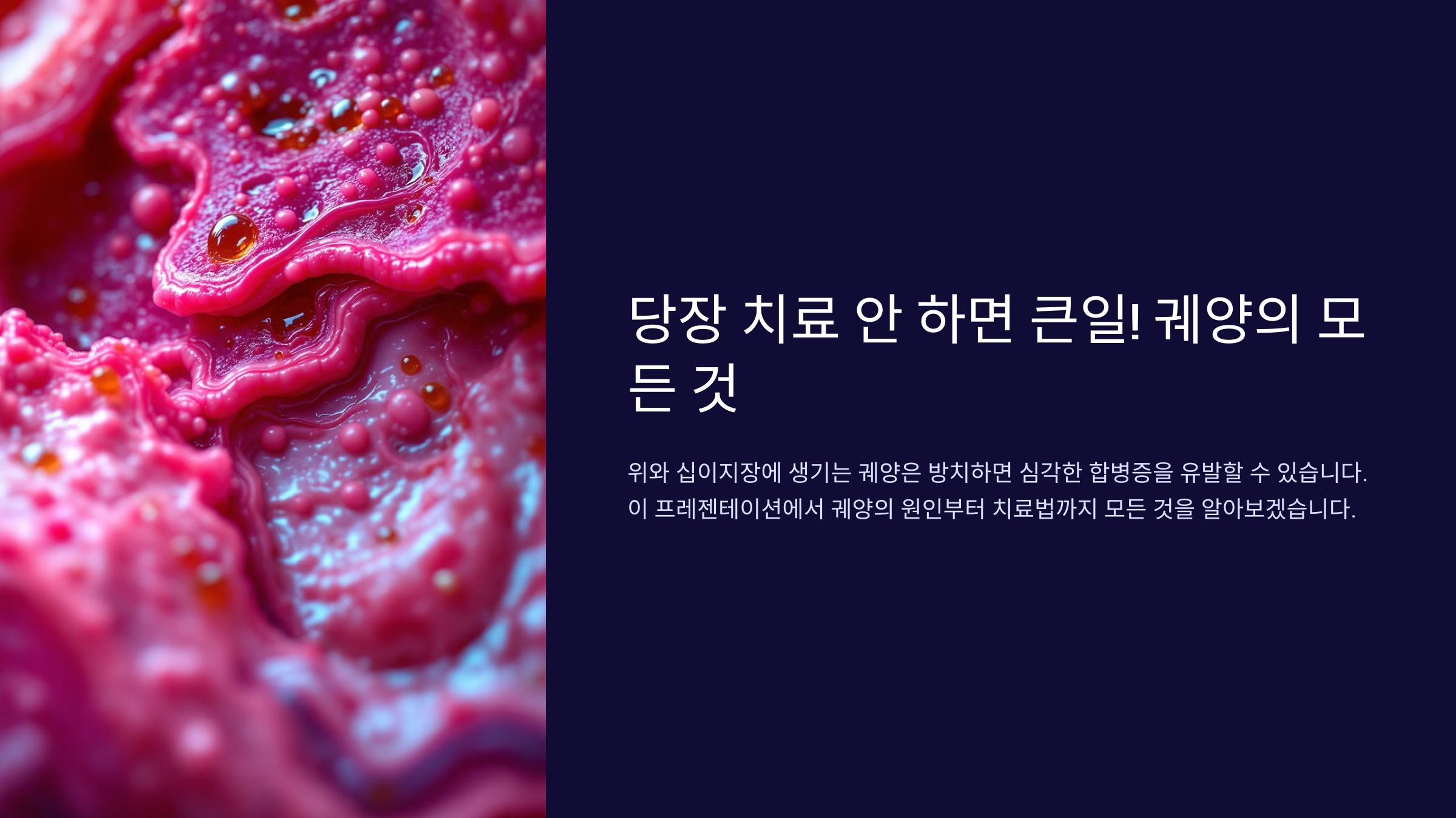이번 글에서는 궤양의 원인부터 치료법, 예방법까지 하나하나 꼼꼼히 살펴볼게요. 내가 생각했을 때, 궤양은 현대인의 스트레스와 잘못된 식습관이 만들어낸 대표적인 질병이에요. 그래서 평소 생활습관을 바꾸는 것이 정말 중요하답니다!