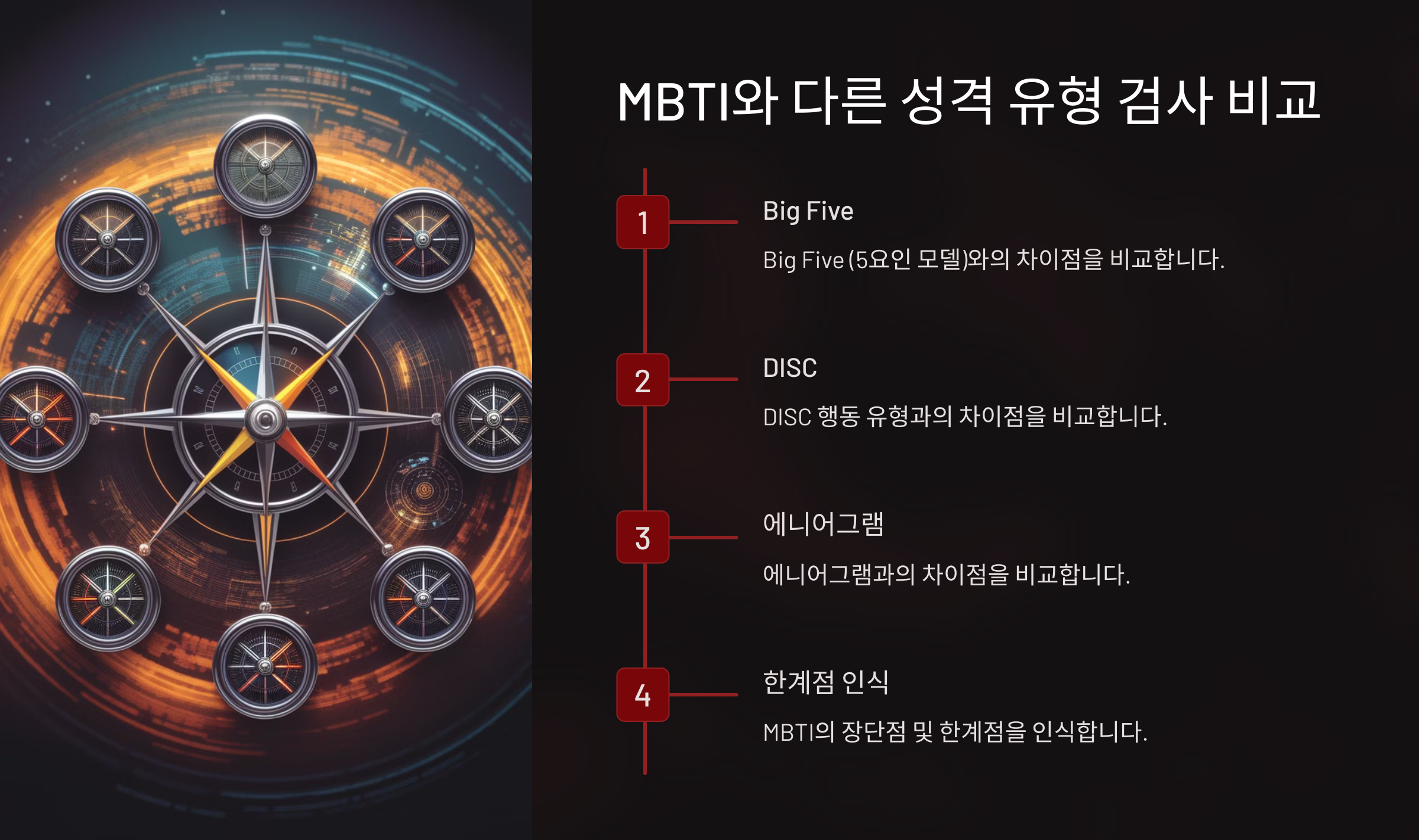 다음으로, MBTI와 다른 성격 유형 검사는 어떤 차이가 있는지 알아볼까요? 🤔